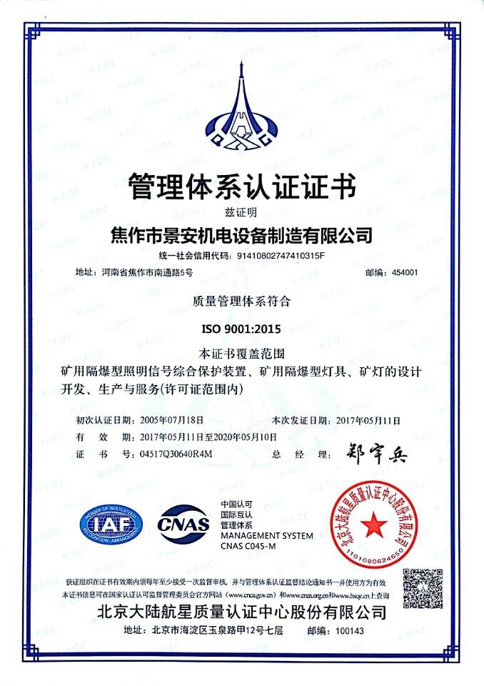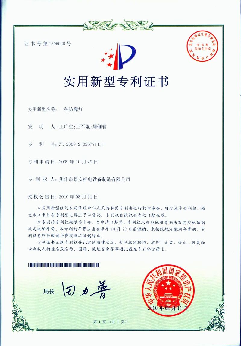 焦作景安公司始終堅持“以科技為先導,以市場為導向”的發(fā)展戰(zhàn)略,不斷進行新產(chǎn)品的研制和開發(fā),在國家“六五”到“九五”期間,承擔和參與了國家多項科技攻關(guān)項目。并被中國電器工業(yè)協(xié)會評定為“質(zhì)量可信產(chǎn)品”。特別是在礦用防爆燈領(lǐng)域,礦用隔爆型半導體(LED)照明燈具,2008年列入國家火炬計劃,獲2009年河南省工業(yè)和信息化廳的科技成果二等獎,并擁有多項國家專利。 |